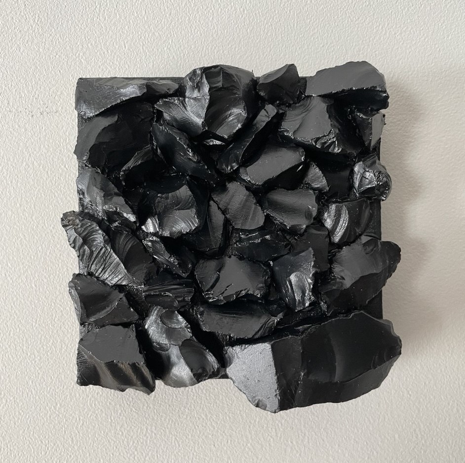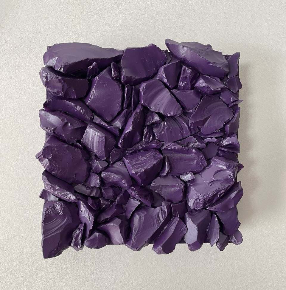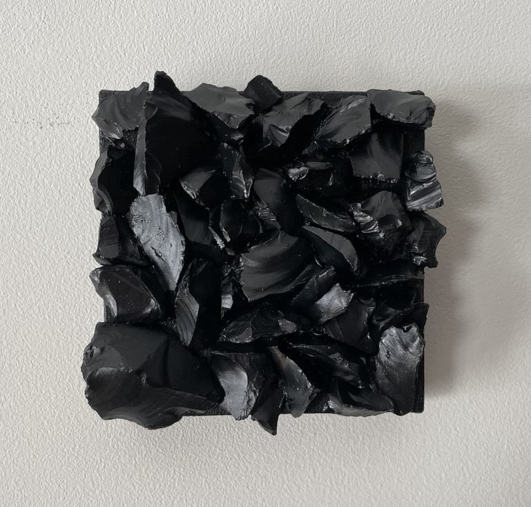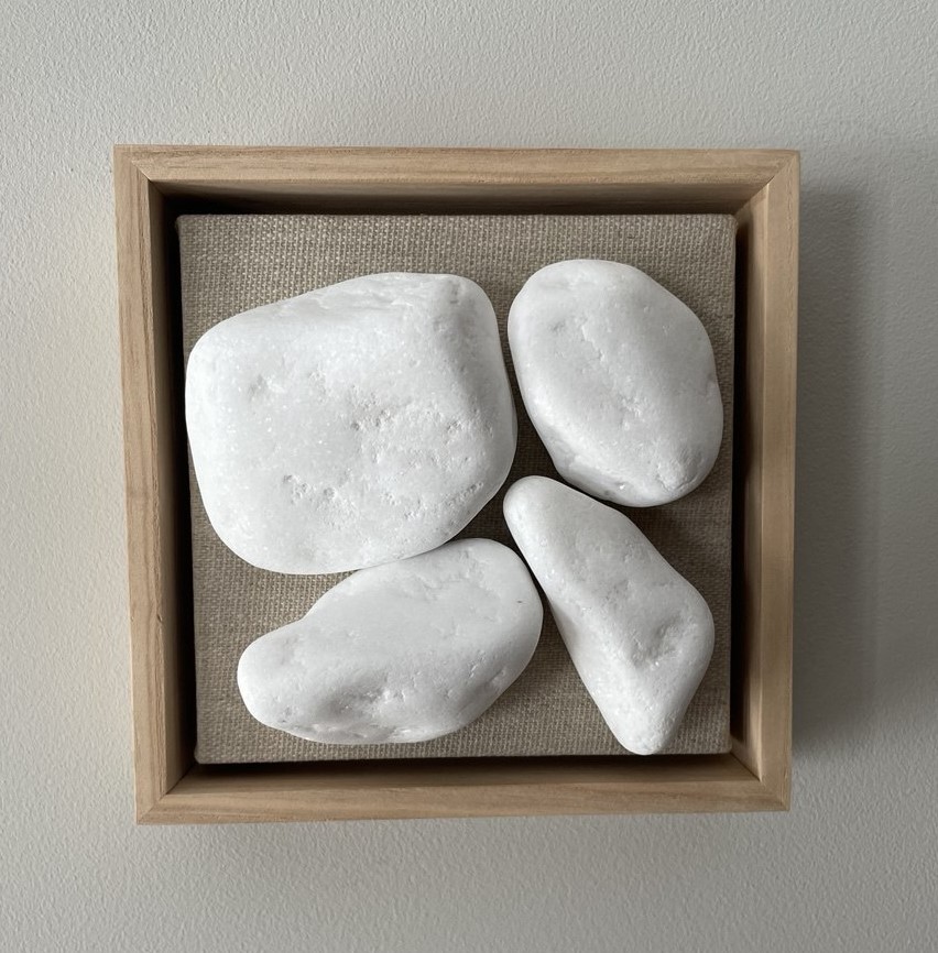technika własna, kamienie na płótnie 12 x 12 x 4 cm 2025 sygnowany na odwrocie 400 zł