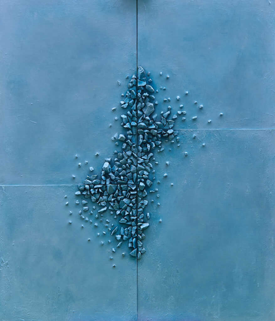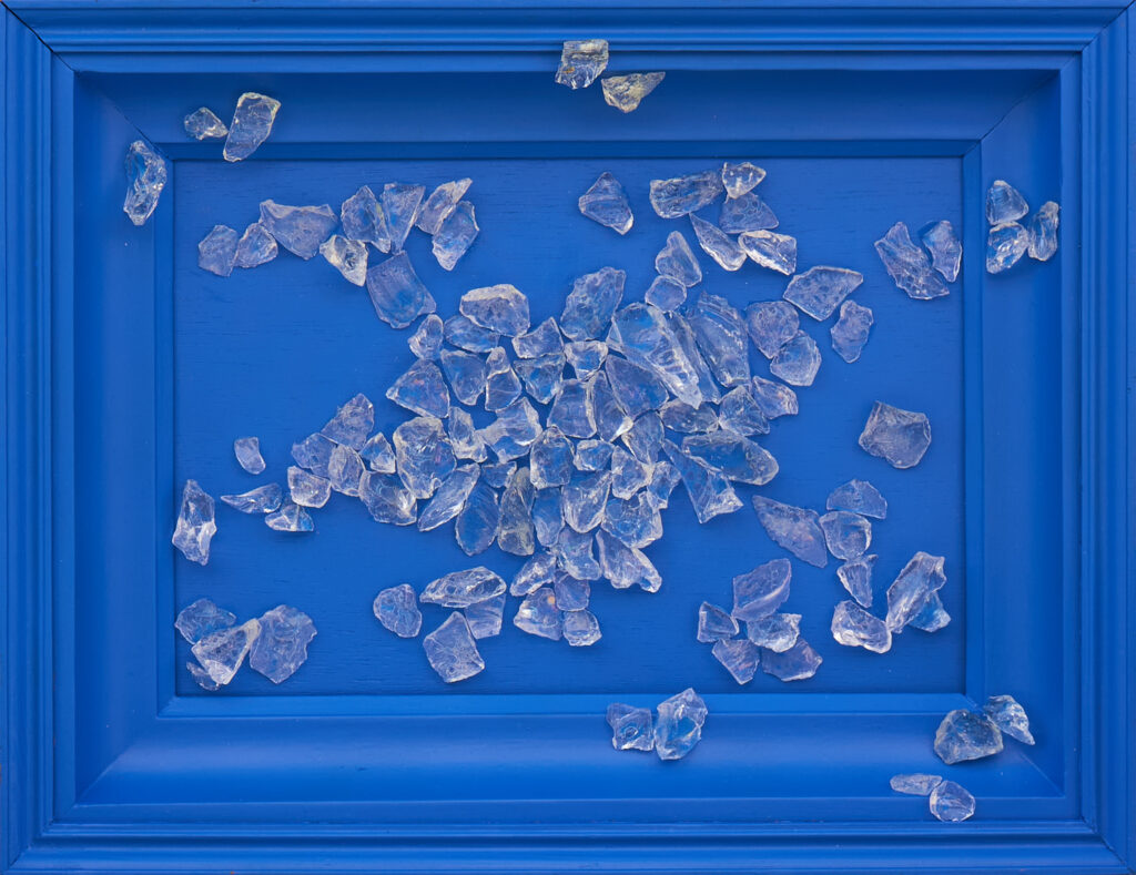 Szklane fragmenty, malowane lub pozostawione w swej naturalnej przejrzystości, symbolizują nasze różne aspekty: to, co już odkryliśmy, oraz to, co jeszcze przed nami. Puste przestrzenie stają się metaforą naszej ciągłej podróży ku samopoznaniu, zaś ramy, w które niektóre elementy są ujęte, to znak naszych prób dostosowania się do świata lub ograniczeń, które nas kształtują i definiują.